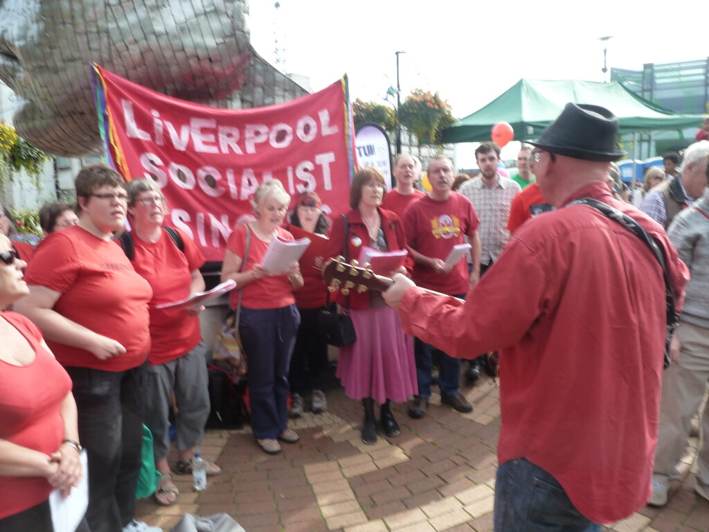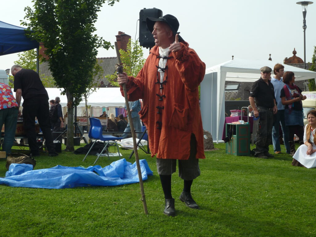 Heading back to The Wiend I arrived as the Liverpool Socialist Singers & Bolton Clarion Choir were in full swing with their opening songs. Then Gerrard Winstanley appeared played by Actor, John Graham Davies to perform a re-enactment of the occupation of St. George’s Hill. I was surprised to see he was assisted by Ian in period clothing wielding a trusty spade. (We call a spade a spade in the North of England).